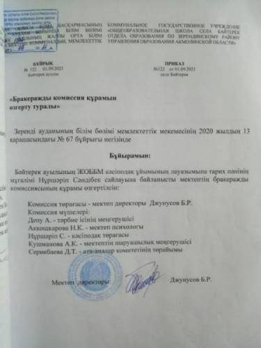 "Ақмола облысы  білім басқармасының Зеренді ауданы бойынша білім бөлімі Бәйтерек ауылының негізгі орта мектебі" коммуналдық мемлекеттік мекемесі