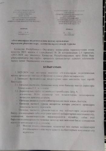 Бұйрық және жұмыс жоспары