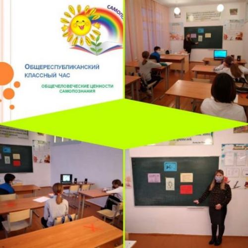 Общереспубликанский классный час. Тема: "Общечеловеческие ценности Самопознания - основа счастливой жизни". Цель классного часа: продолжать знакомить обучающихся с общечеловеческими ценностями, способствовать формированию лучших нравственных качеств, восп
