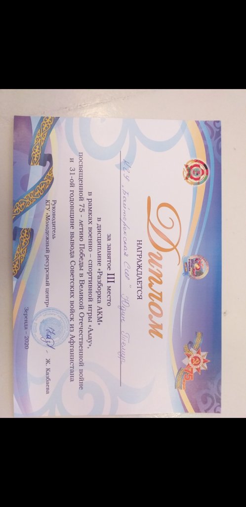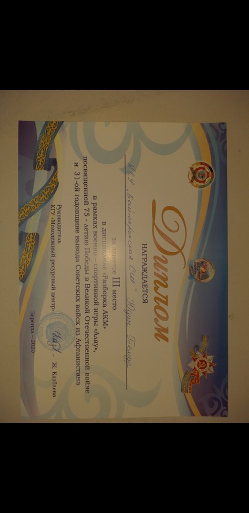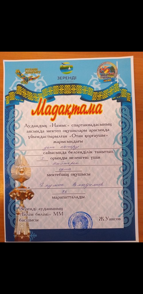 Аудандық <<Намыс>> спартакиадасының аясында мектеп оқушылар арасында ұйымдастырылған <<Отан қорғаушы>> жарысында жалпы командалық 1 орынды иеленген үшін Бәйтерек орта мектебі марапатталады