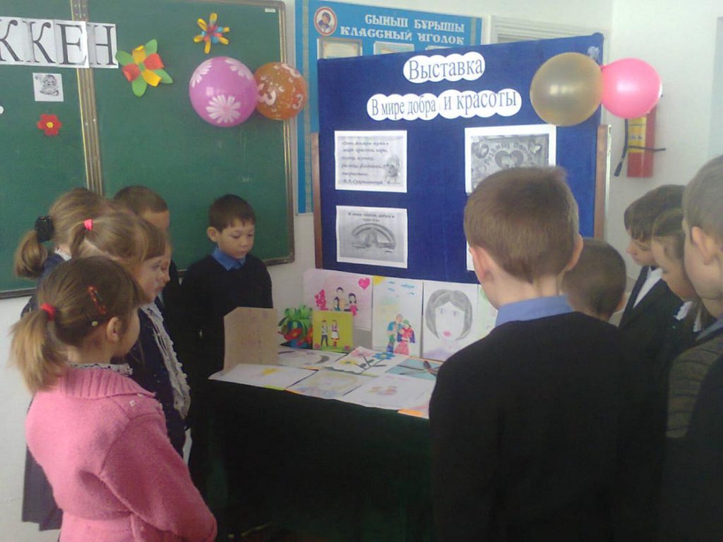 Сегодня 08.02.2017 г. у нас в школе прошла выставка творческих работ (рисунки, поделки, открытки). В выставке приняли участие начальные классы. Ребята нарисовали яркие, красивые рисунки  о маме, дружбе, красоте, доброте, также смастерили красивые поделки.