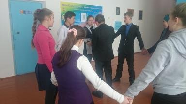3 - ақпан күні "Қарым - қатынас " атты тренингті мектеп психолгі және аға тәлімгер 8-9 сыныптар арасында өткізді.