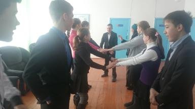 03.02.2017 г у нас в школе психологом Аккошкаровой Н.К. и старшей вожатой Кулыжкиной Ю.В. проводился психологический тренинг с 8-9 «Б» классами. Тема тренинга «Тренинг общения». Также проводились упражнения на сплочение коллектива. Цель тренинга: научить